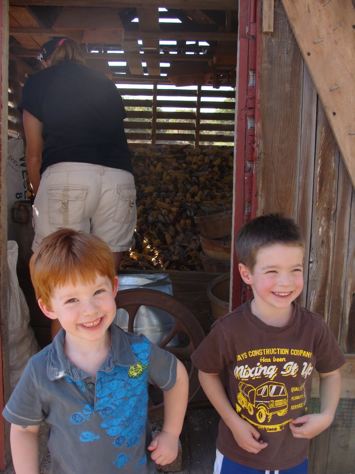 Our husbands were away on a retreat so Katie and the boys came to have a sleepover. Everybody skipped naps (including Emmett...I guess he was too excited!) So, we took them over to Wagner Farm, got pumpkins, carved the pumpkins and ate dinner all before the kids went to bed at 7. Katie and I sat on the couch and watched a movie. It was wonderful! Here are a ton of pictures from the day...sorry...